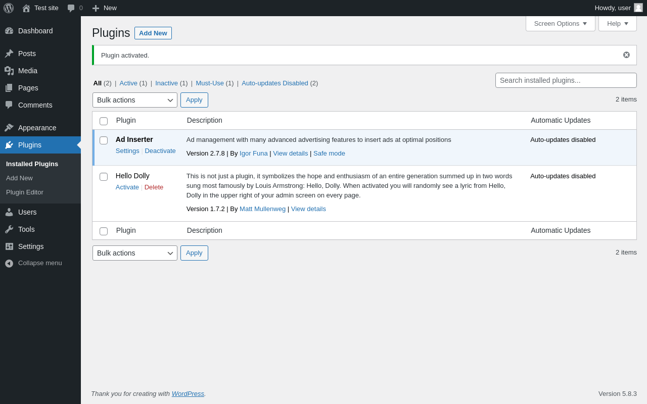 Does Ad Inserter work with WordPress 5.8.3 and PHP 7.4.8? A smoke test was performed on .