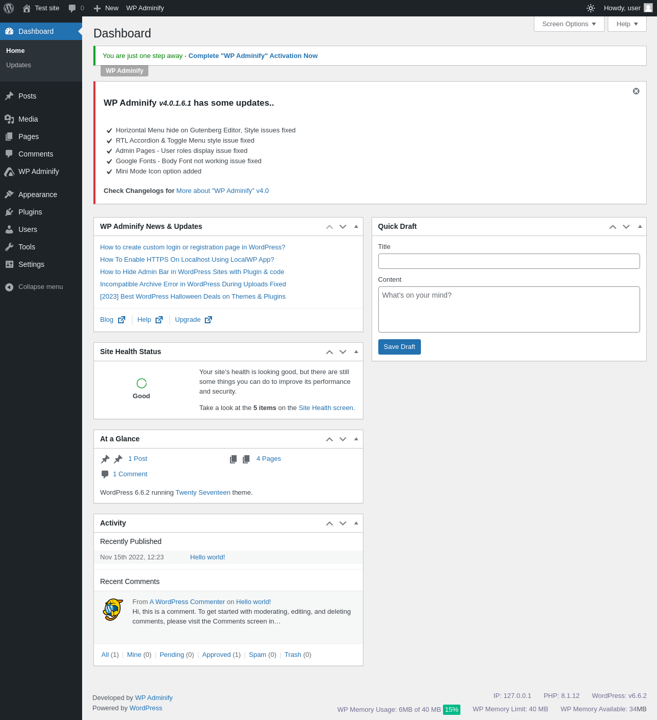 Does WP Adminify work with WordPress 6.6.2 and PHP 8.1.12? A smoke test was performed on .