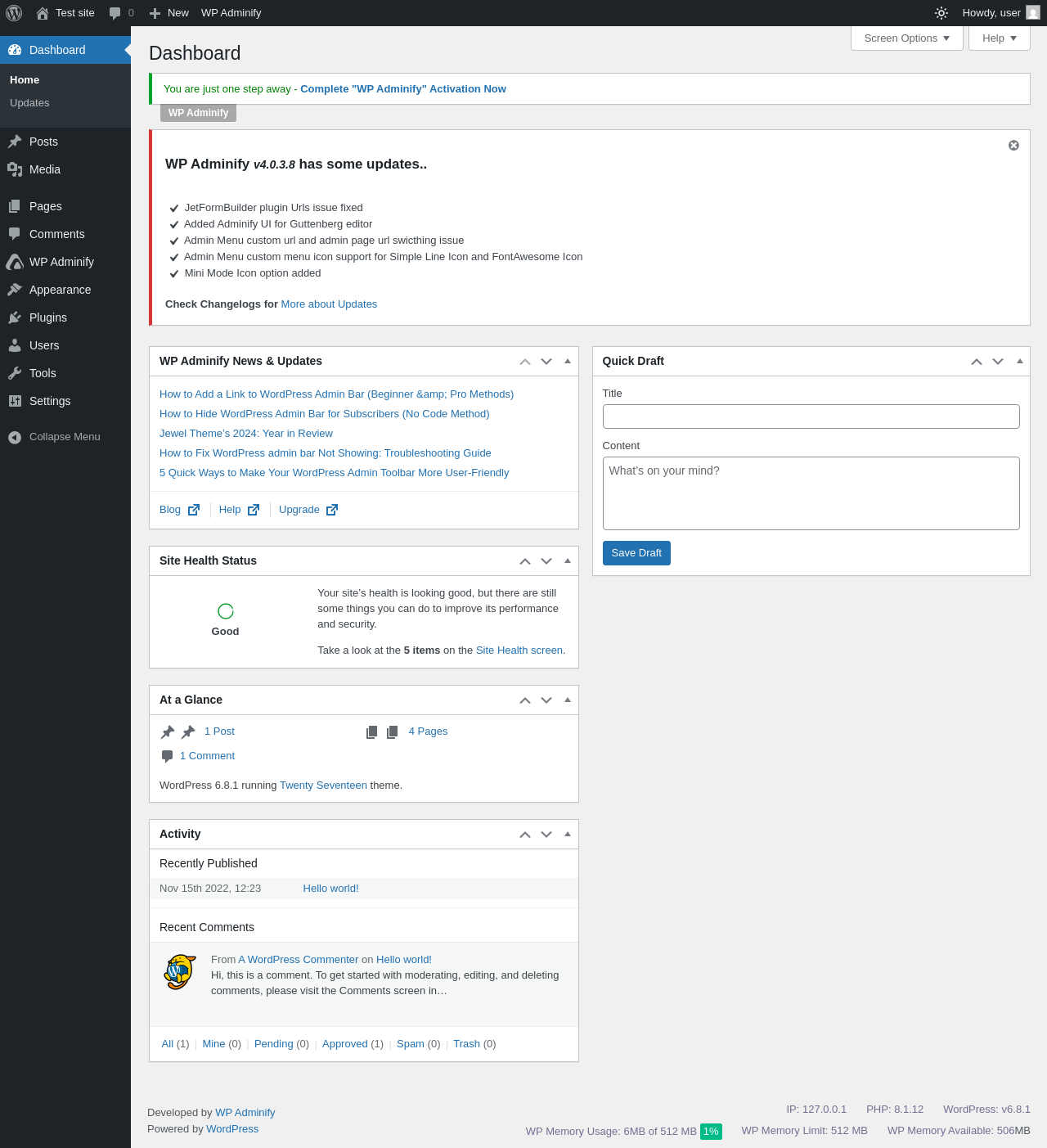 Does WP Adminify work with WordPress 6.8.1 and PHP 8.1.12? A smoke test was performed on .