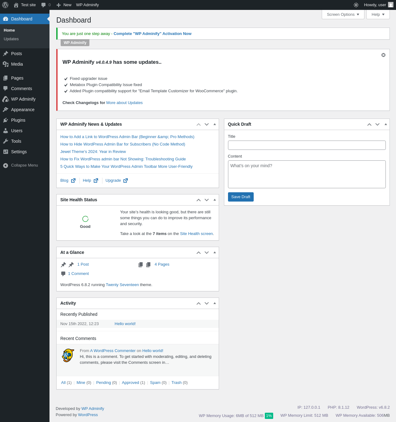 Does WP Adminify work with WordPress 6.8.2 and PHP 8.1.12? A smoke test was performed on .