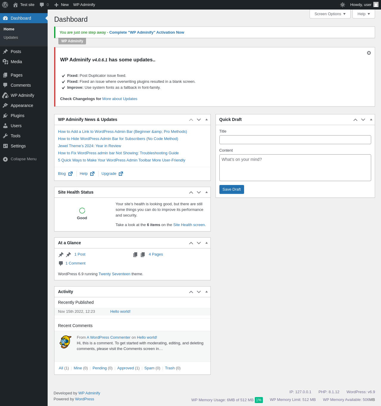 Does WP Adminify work with WordPress 6.9 and PHP 8.1.12? A smoke test was performed on .