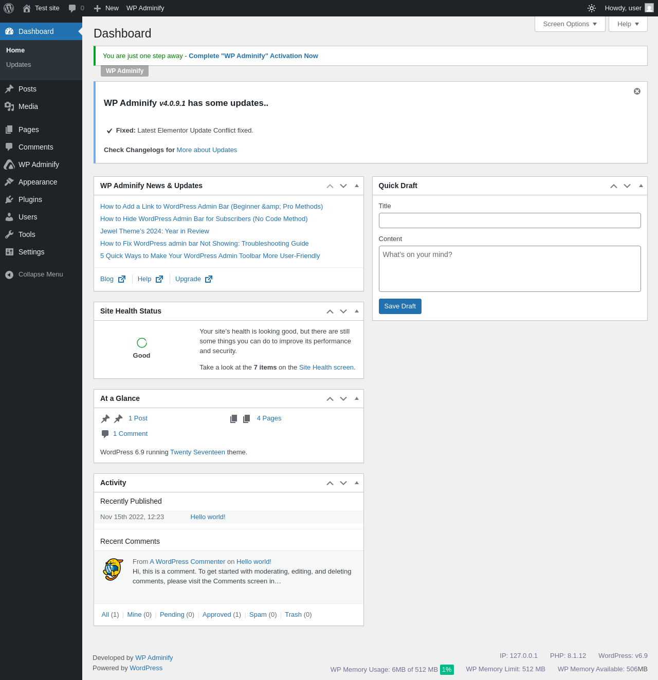 Does WP Adminify work with WordPress 6.9 and PHP 8.1.12? A smoke test was performed on .