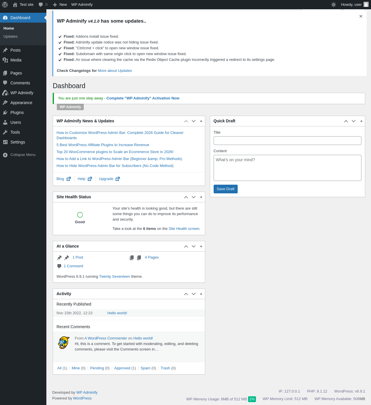 Does WP Adminify work with WordPress 6.9.1 and PHP 8.1.12? A smoke test was performed on .