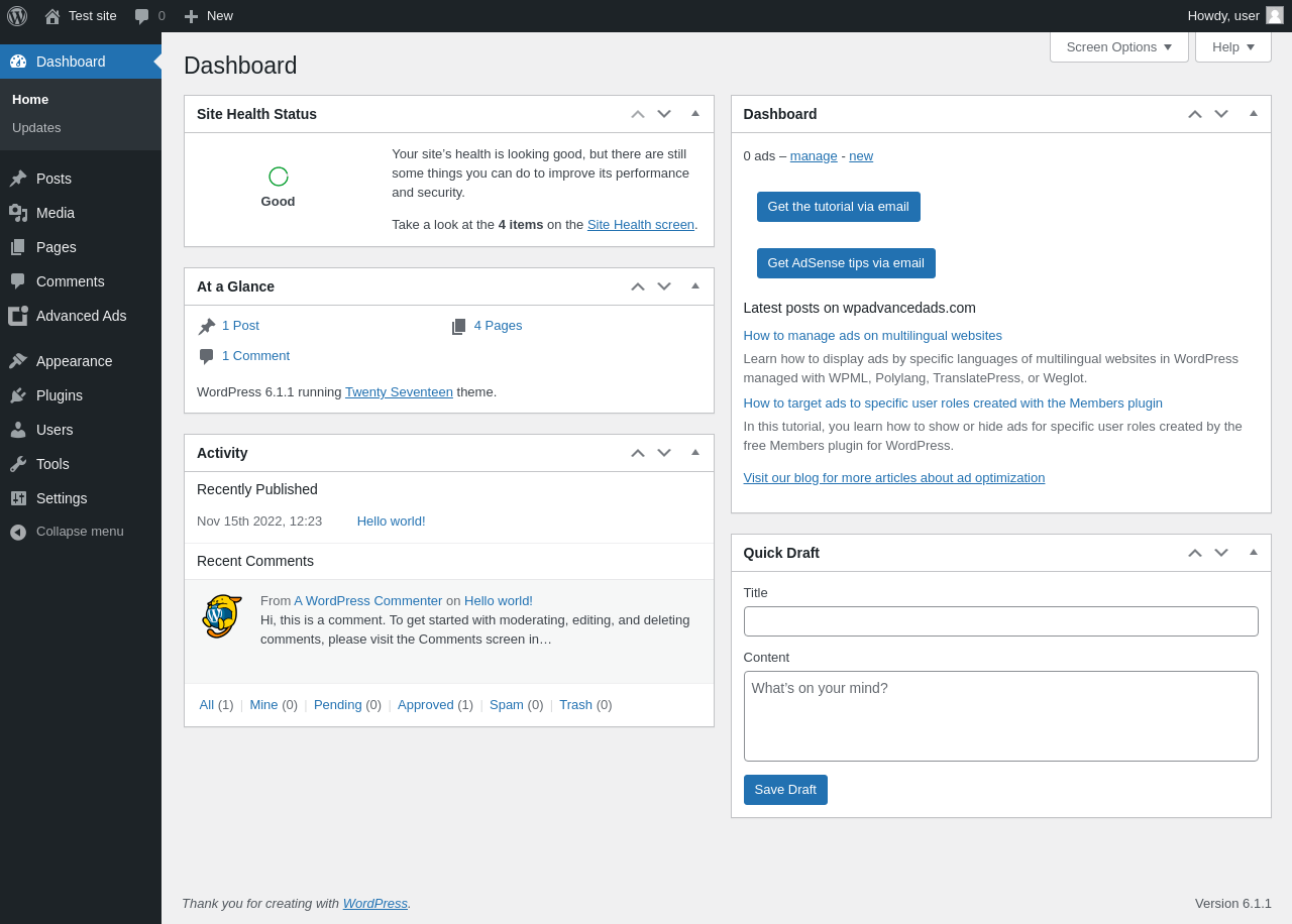 Does Advanced Ads work with WordPress 6.1.1 and PHP 8.1.12? A smoke test was performed on .