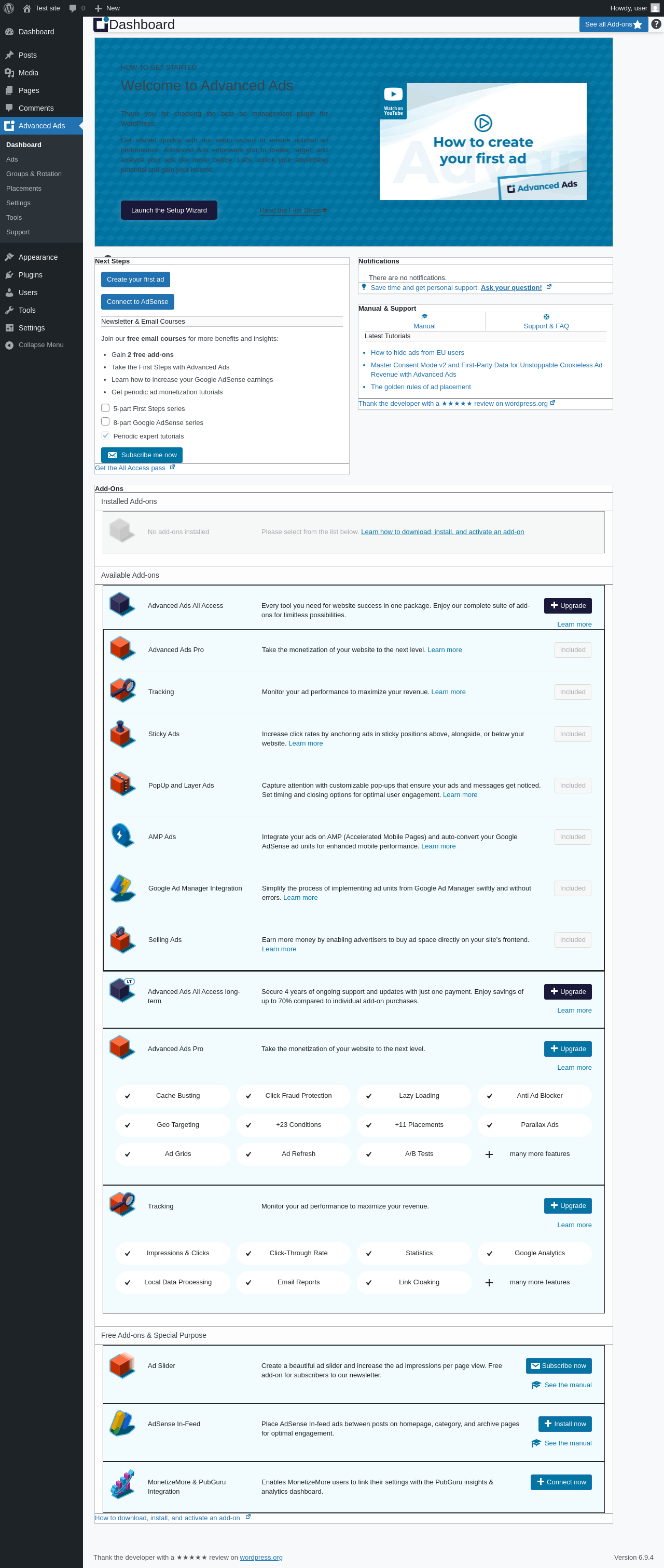 Does Advanced Ads work with WordPress 6.9.4 and PHP 8.1.12? A smoke test was performed on .