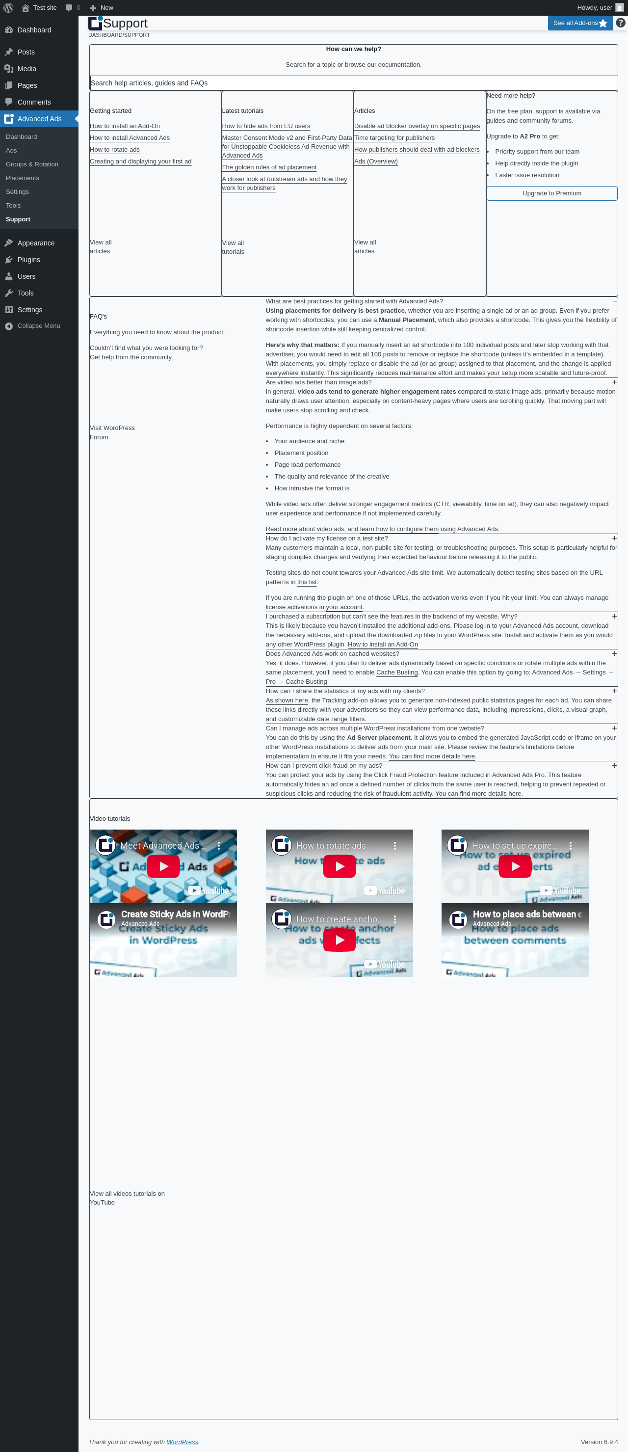 | URL | /wp-admin/admin.php?page=advanced-ads-support |