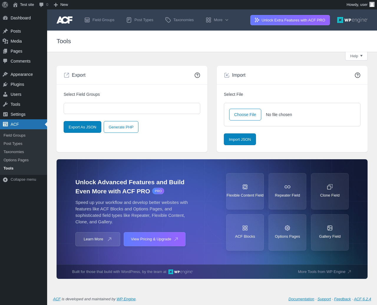 | URL | /wp-admin/edit.php?post_type=acf-field-group&page=acf-tools |