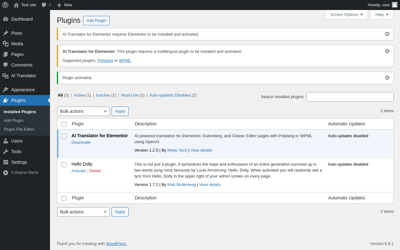 Does AI Translator for Elementor work with WordPress 6.9.1 and PHP 8.1.12? A smoke test was performed on .