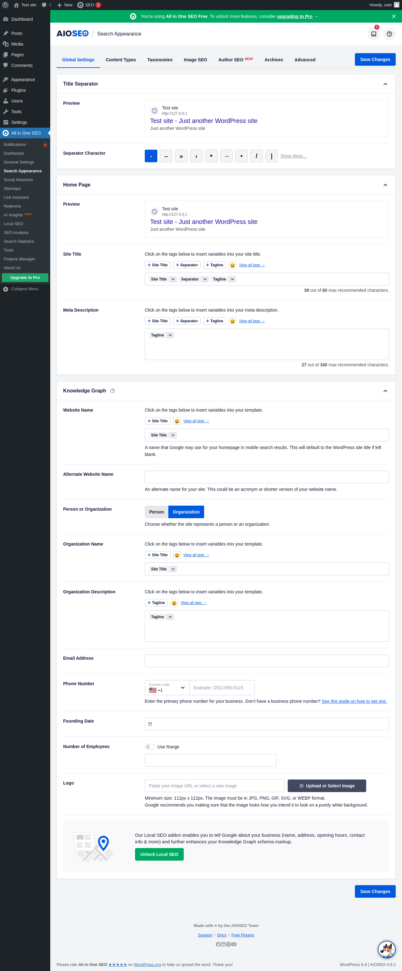 | URL | /wp-admin/admin.php?page=aioseo-search-appearance |
