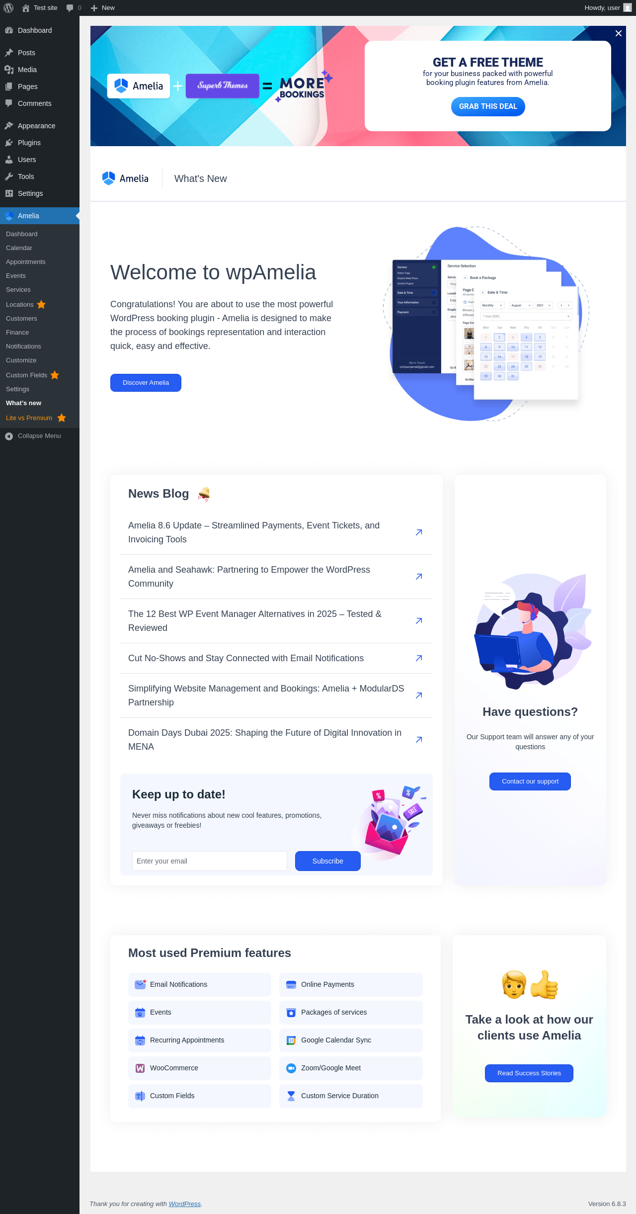 Does Amelia work with WordPress 6.8.3 and PHP 8.1.12? A smoke test was performed on .