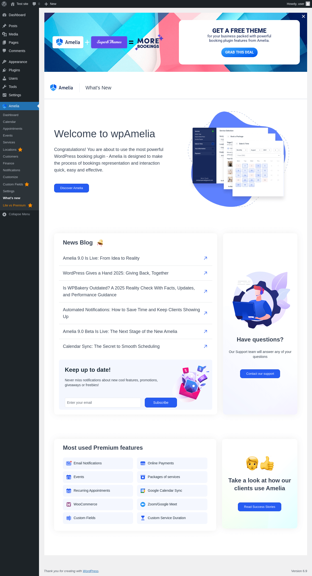 Does Amelia work with WordPress 6.9 and PHP 8.1.12? A smoke test was performed on .