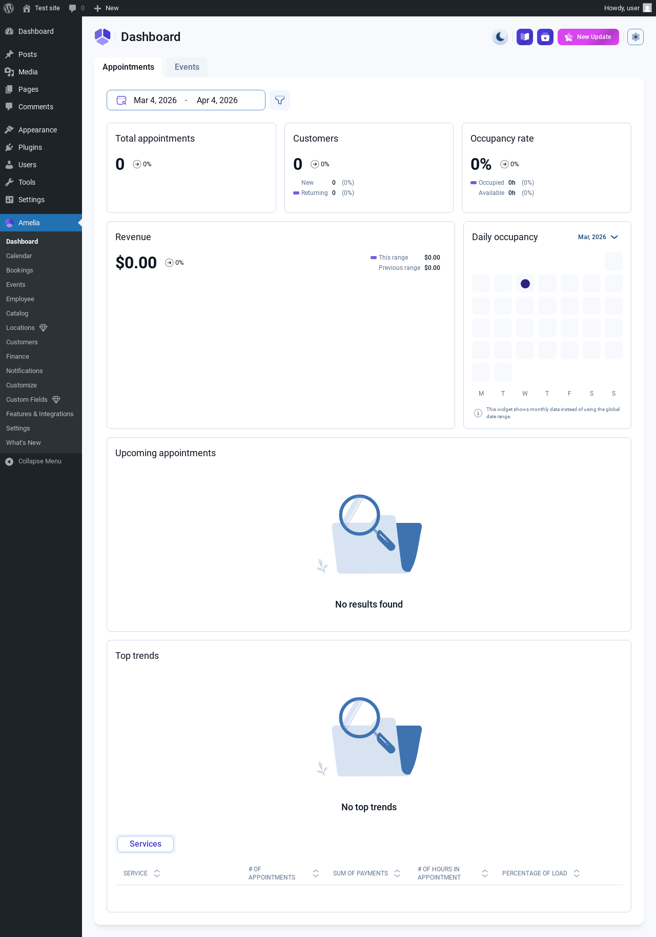 | URL | /wp-admin/admin.php?page=wpamelia-dashboard#/appointments |