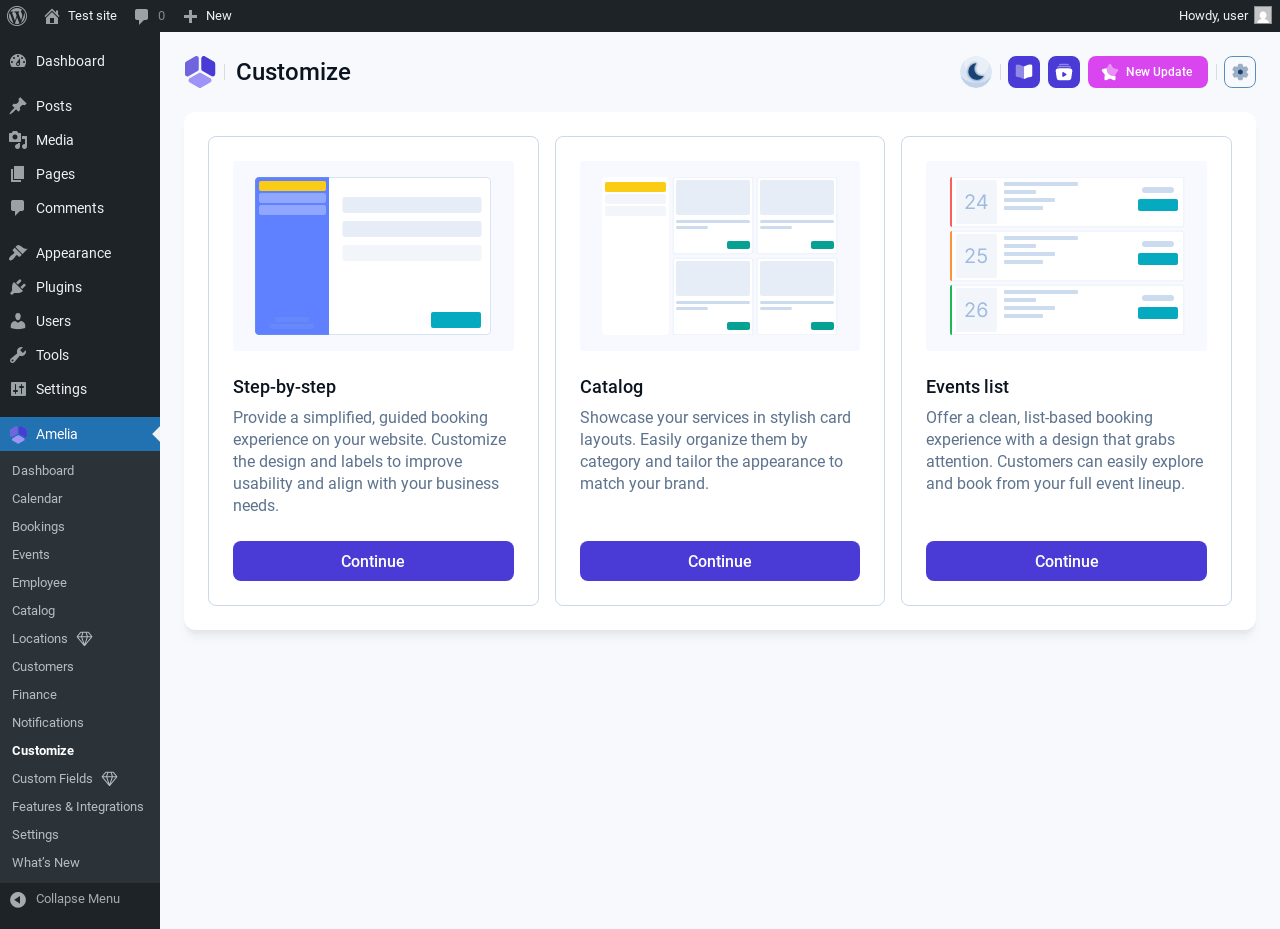 | URL | /wp-admin/admin.php?page=wpamelia-whats-new#/ |