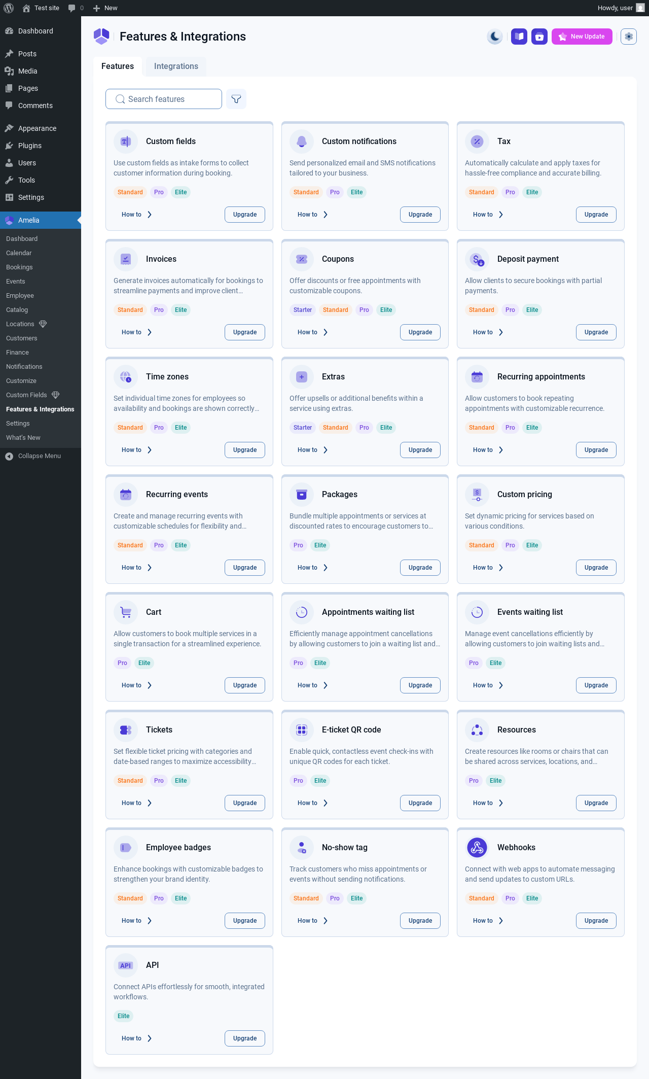 | URL | /wp-admin/admin.php?page=wpamelia-features-integrations#/features |