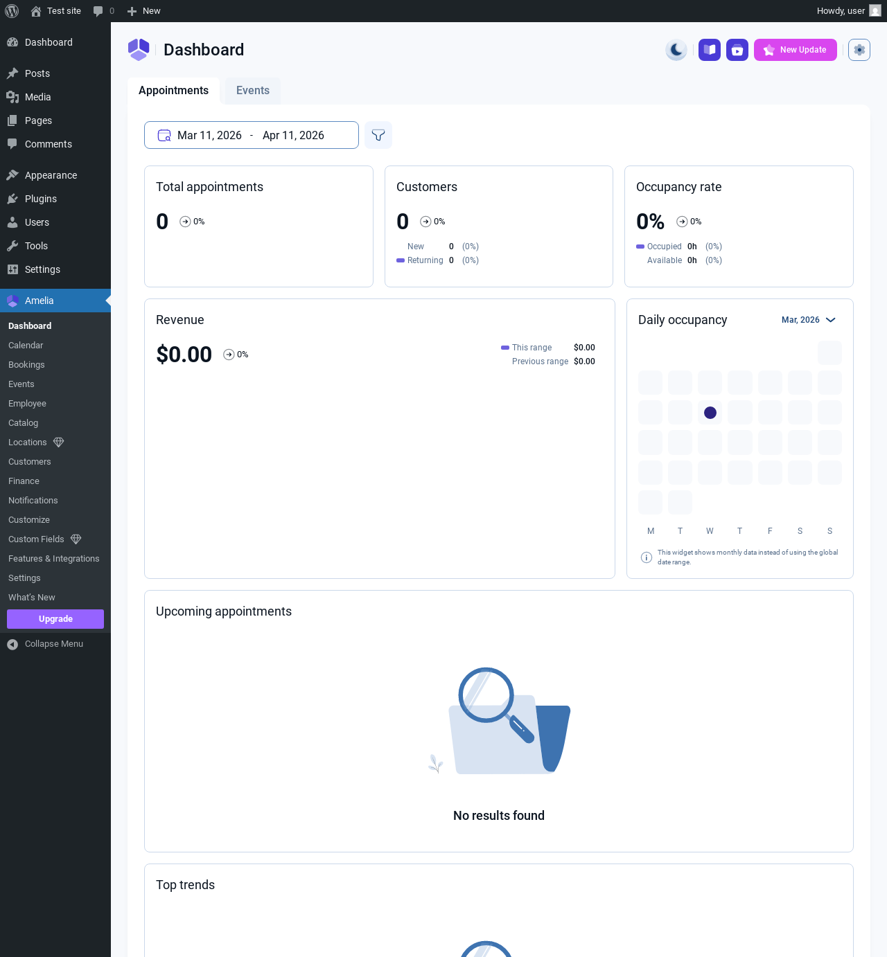 | URL | /wp-admin/admin.php?page=wpamelia-dashboard#/appointments |
