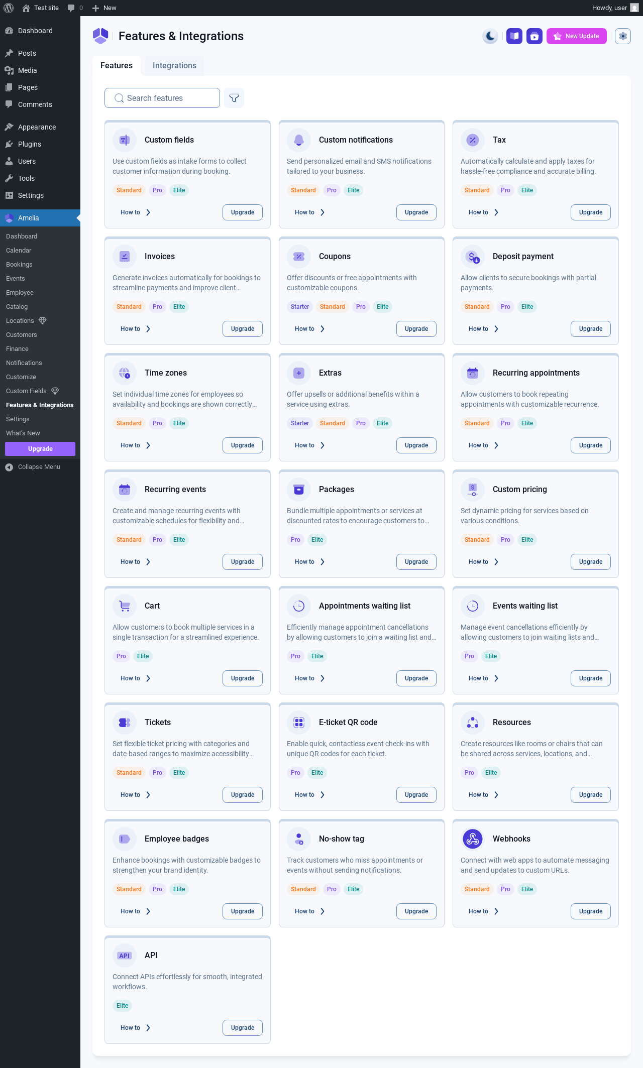 | URL | /wp-admin/admin.php?page=wpamelia-features-integrations#/features |