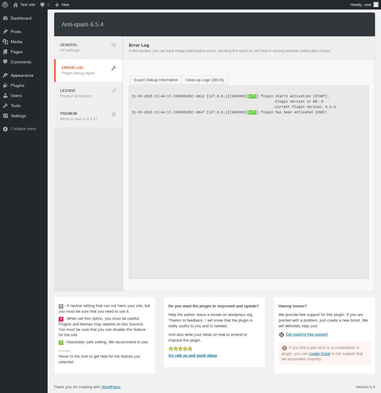 Does Anti-Spam work with WordPress 5.4 and PHP 7.2.16? A smoke test was performed on .