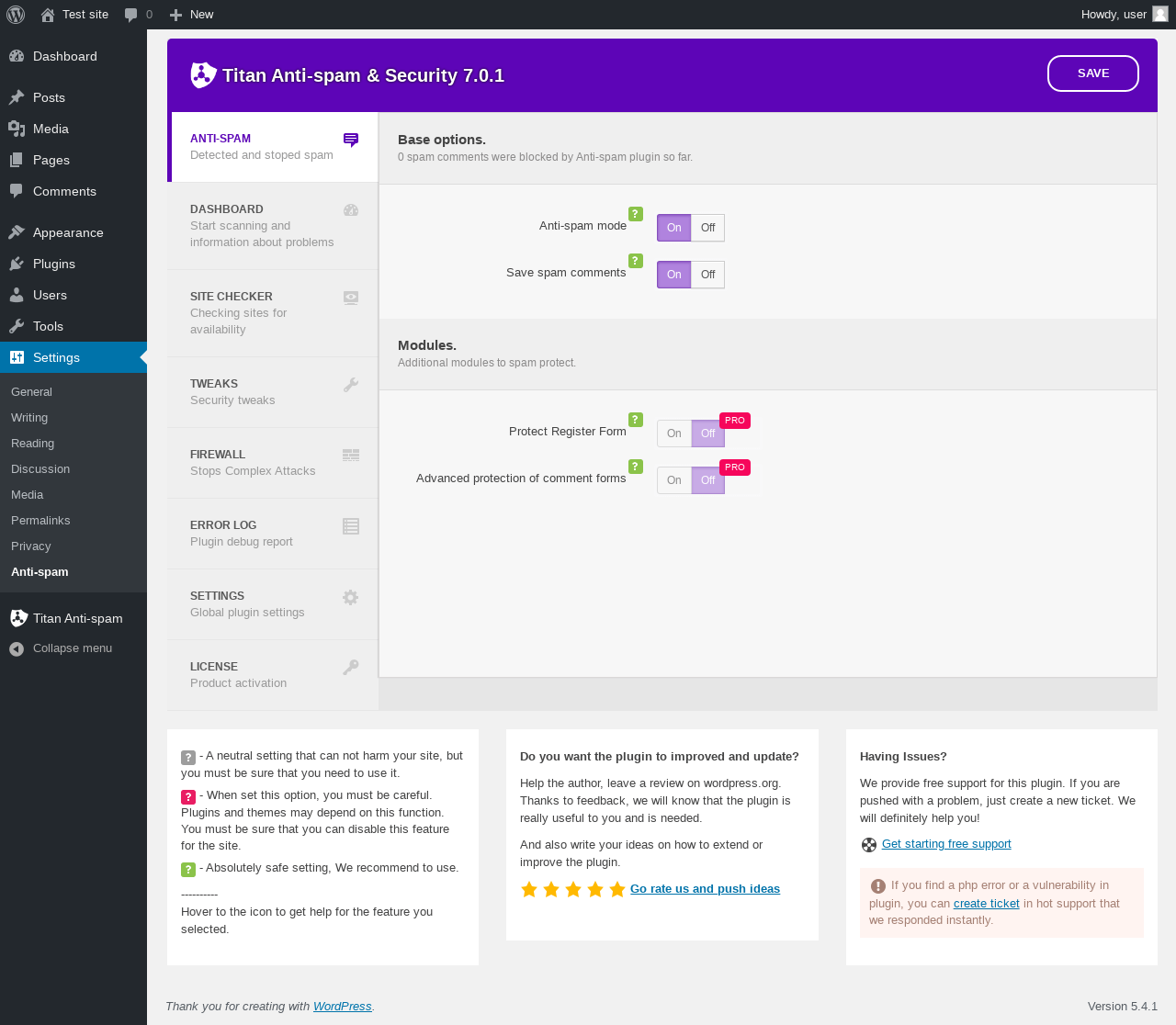 Does Titan Anti-spam & Security work with WordPress 5.4.1 and PHP 7.2.16? A smoke test was performed on .