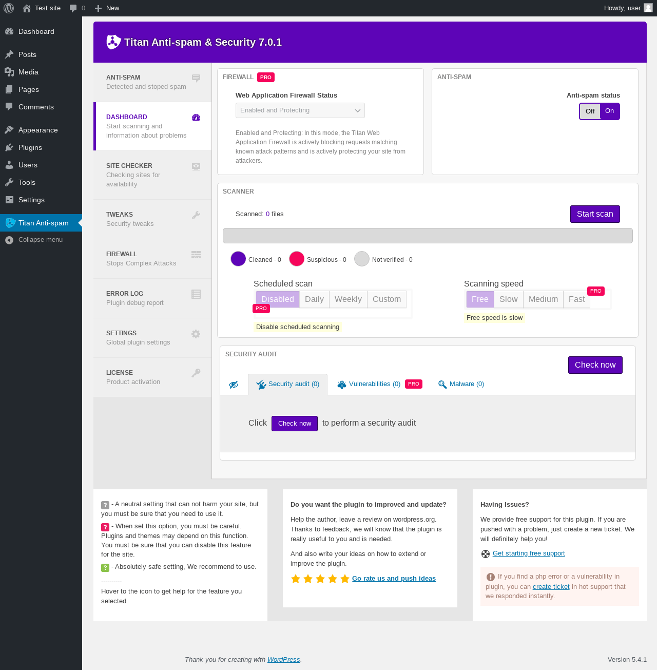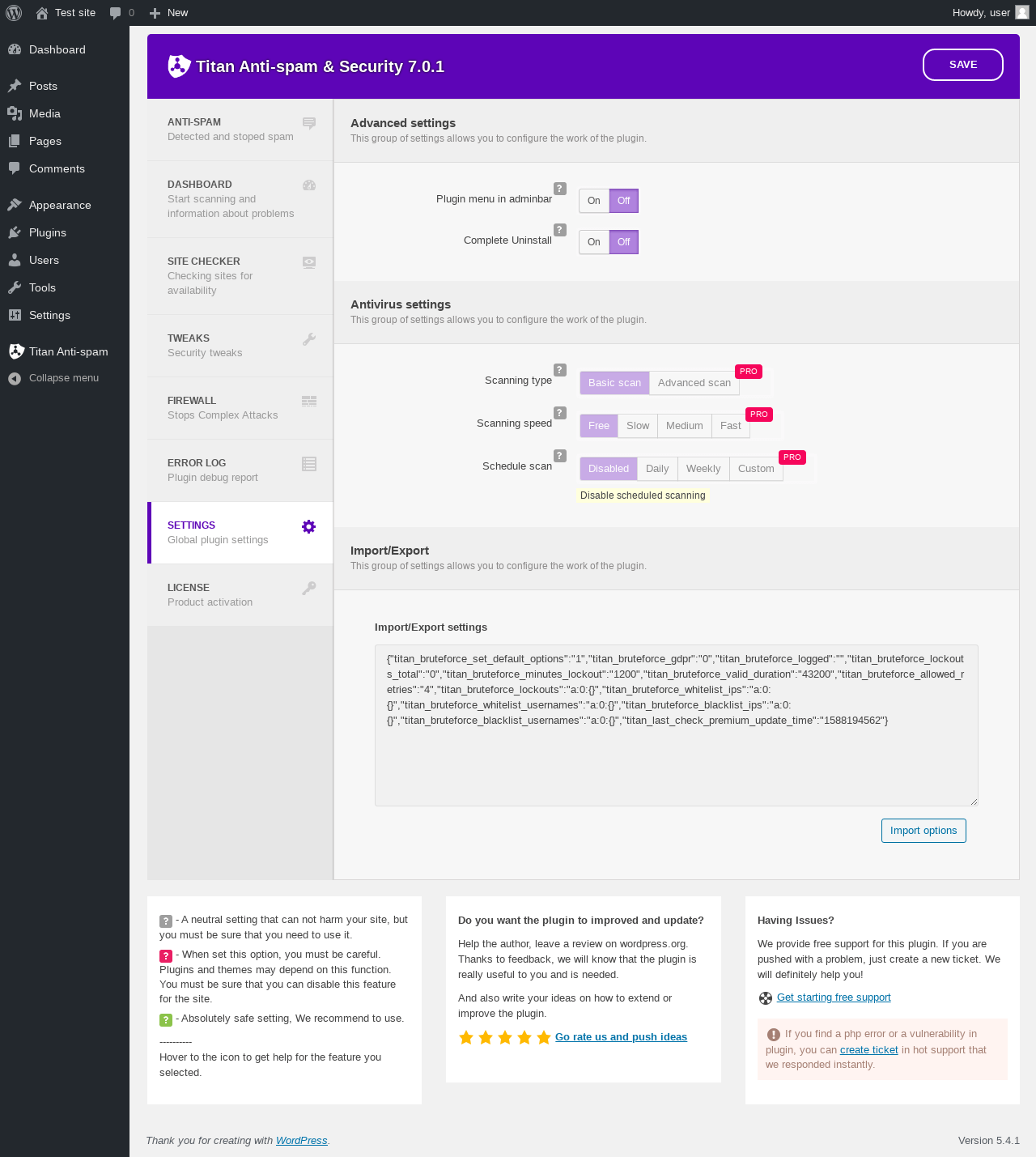 | URL | /wp-admin/options-general.php?page=antispam-titan_security |