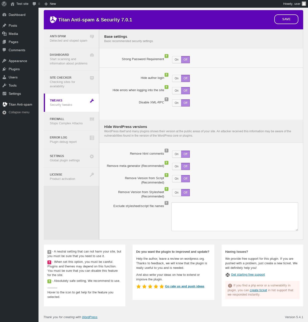 | URL | /wp-admin/admin.php?page=tweaks-titan_security |