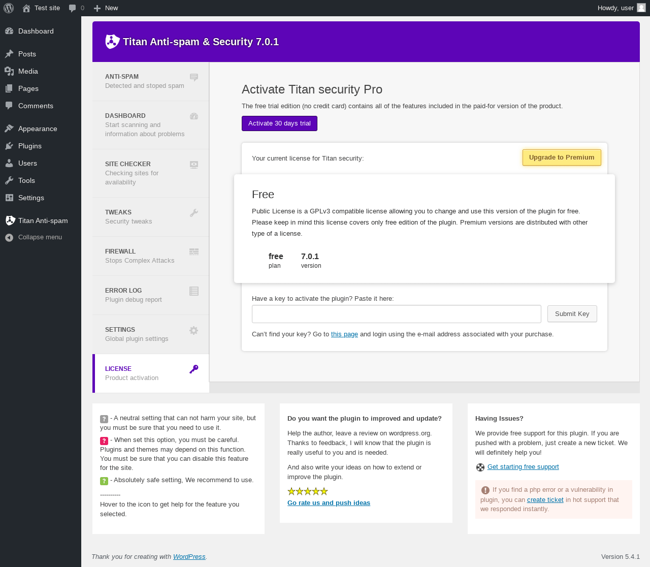| URL | /wp-admin/admin.php?page=license-titan_security |