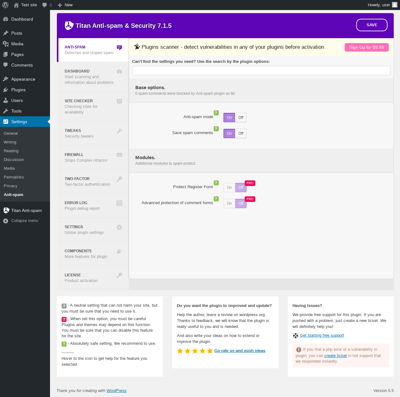 | URL | /wp-admin/options-general.php?page=antispam-titan_security |