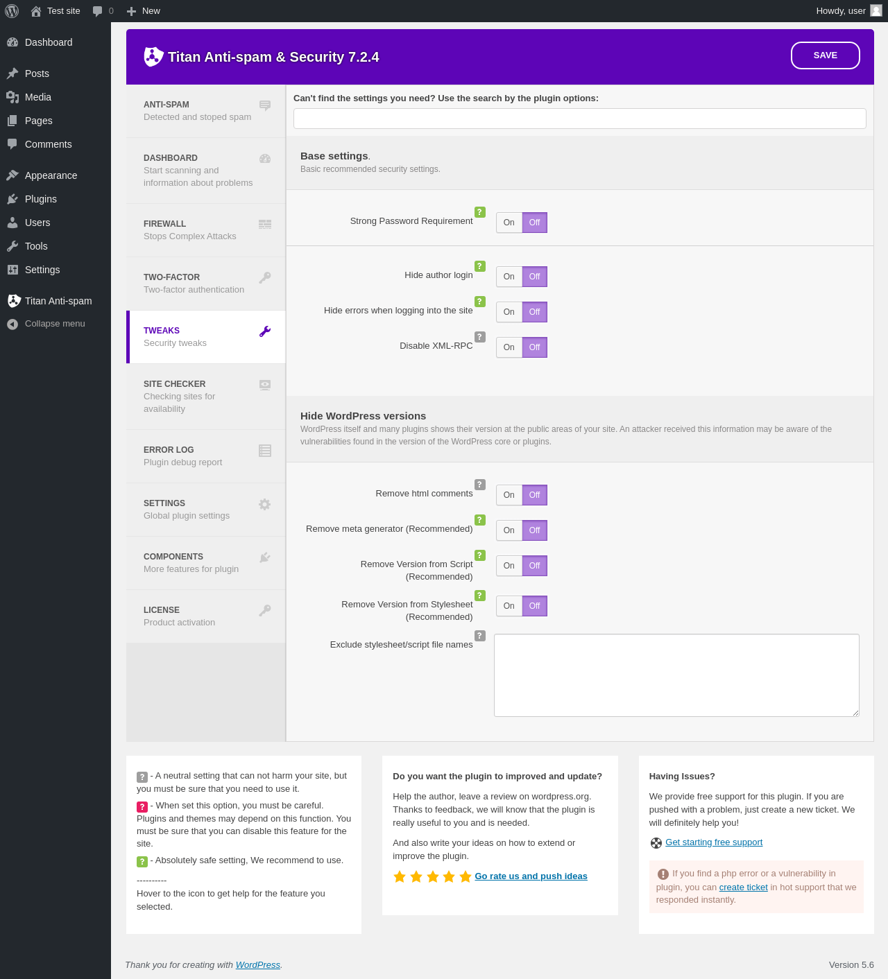 | URL | /wp-admin/admin.php?page=tweaks-titan_security |