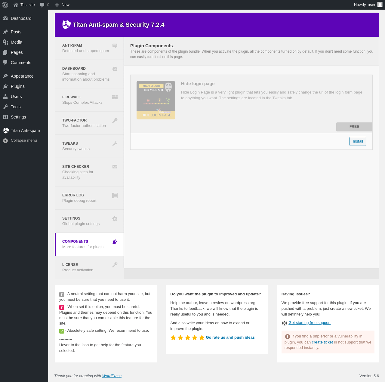 | URL | /wp-admin/admin.php?page=components-titan_security |