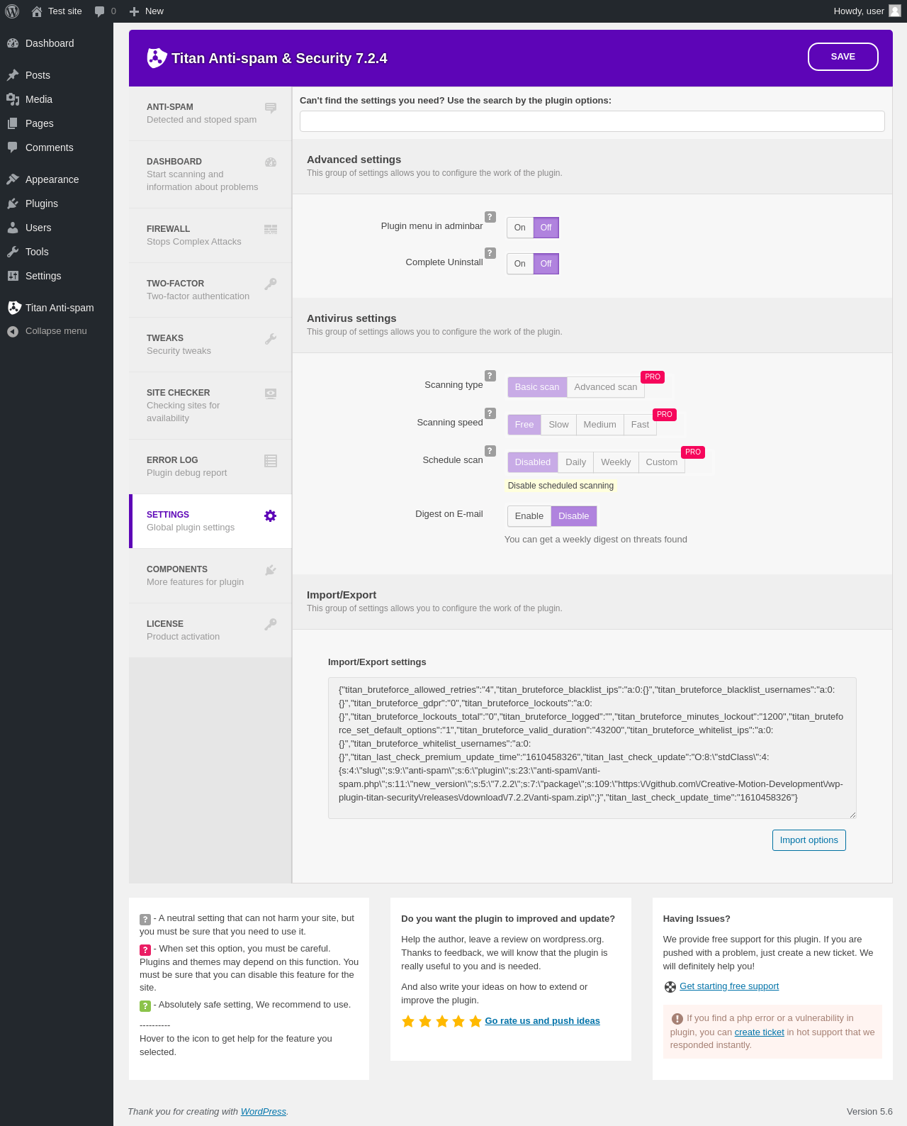 | URL | /wp-admin/options-general.php?page=antispam-titan_security |
