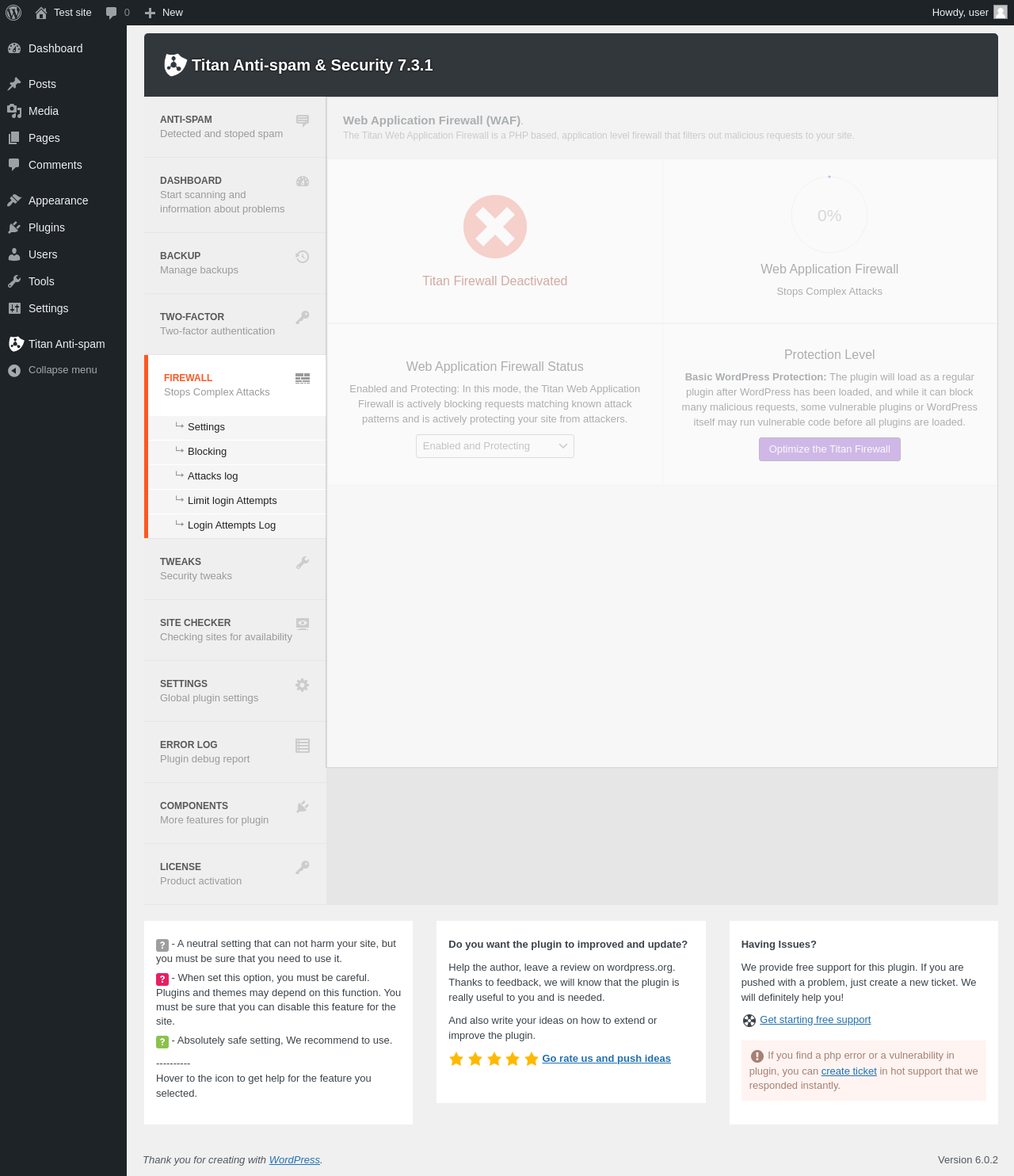 Does Titan Anti-spam & Security work with WordPress 6.0.2 and PHP 7.4.8? A smoke test was performed on .
