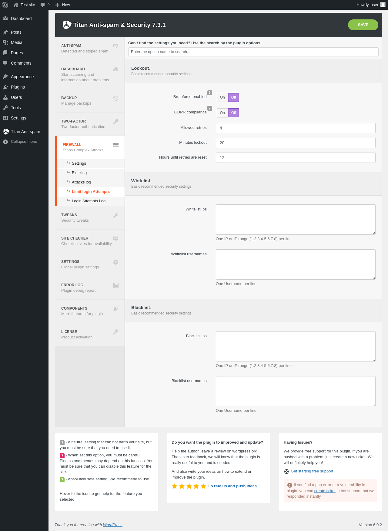| URL | /wp-admin/options-general.php?page=antispam-titan_security |