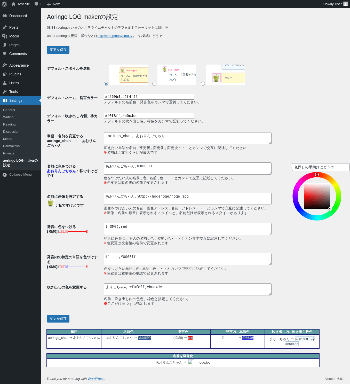 | WordPress.org page | https://wordpress.org/plugins/aoringo-log-maker/ |
