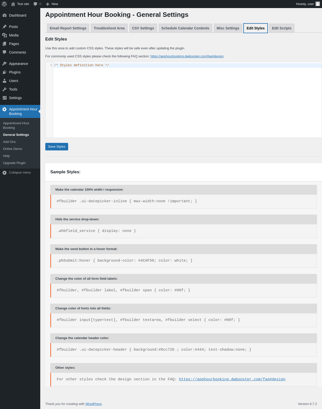 | URL | /wp-admin/options-general.php?page=cp_apphourbooking |
