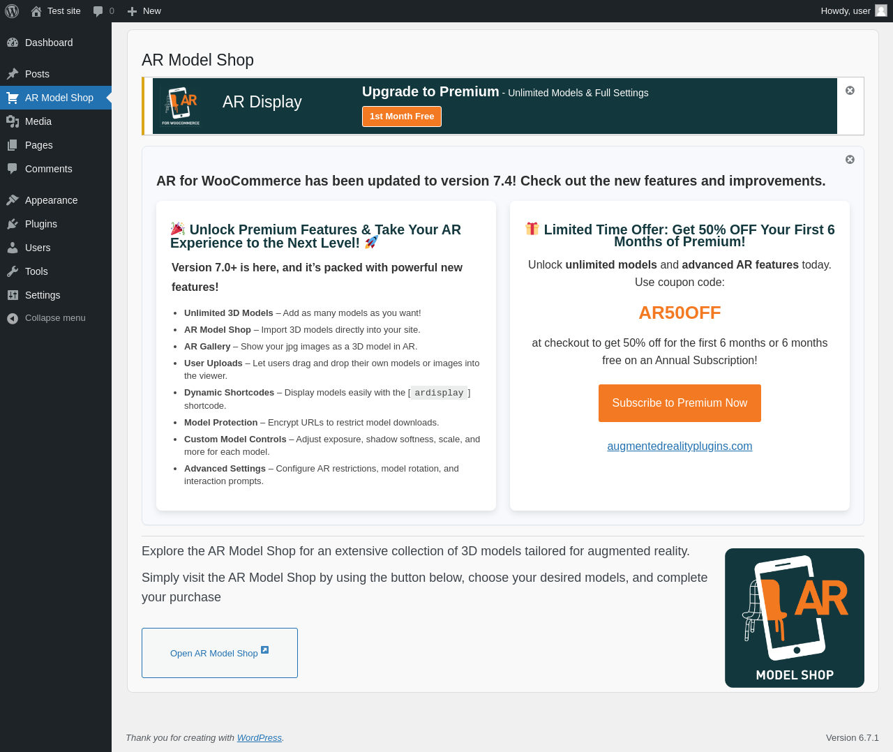 | URL | /wp-admin/admin.php?page=ar-modelshop |
