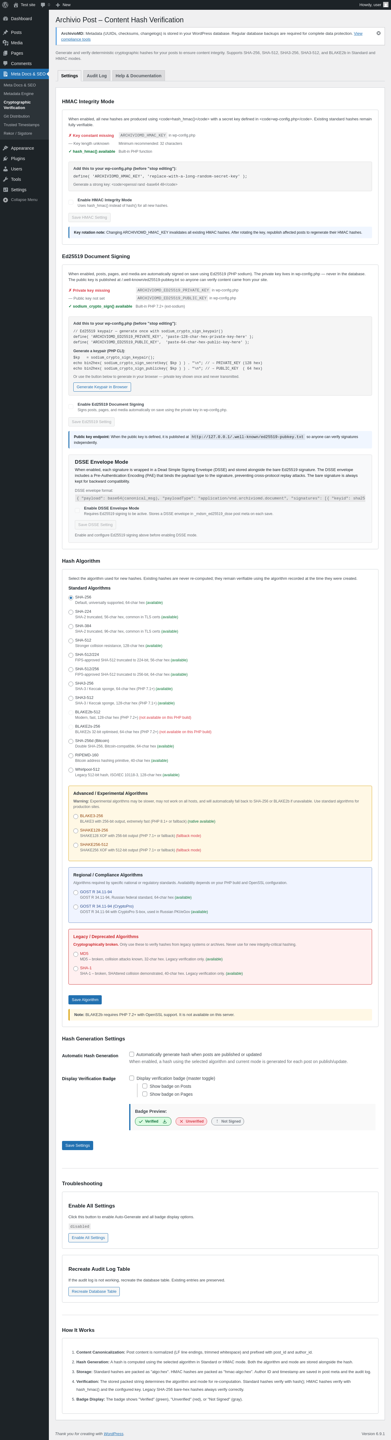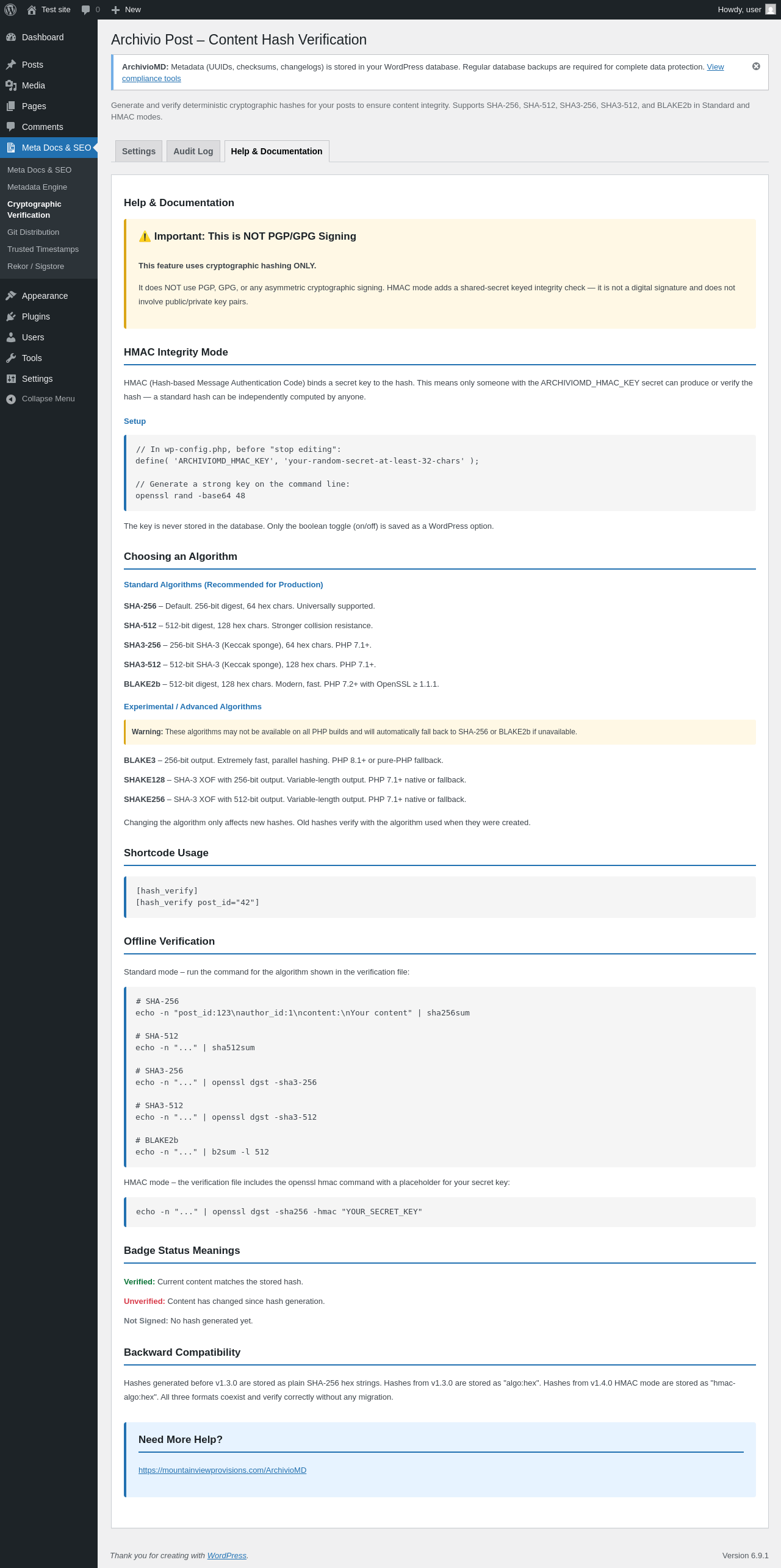 Does ArchivioMD work with WordPress 6.9.1 and PHP 8.1.12? A smoke test was performed on .