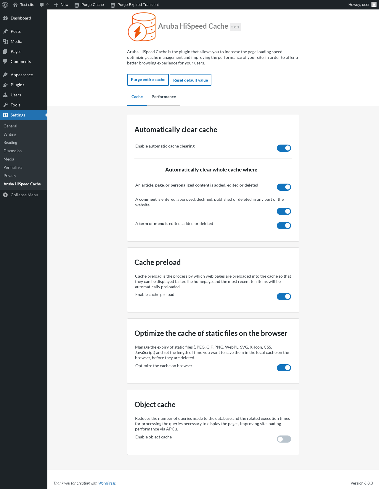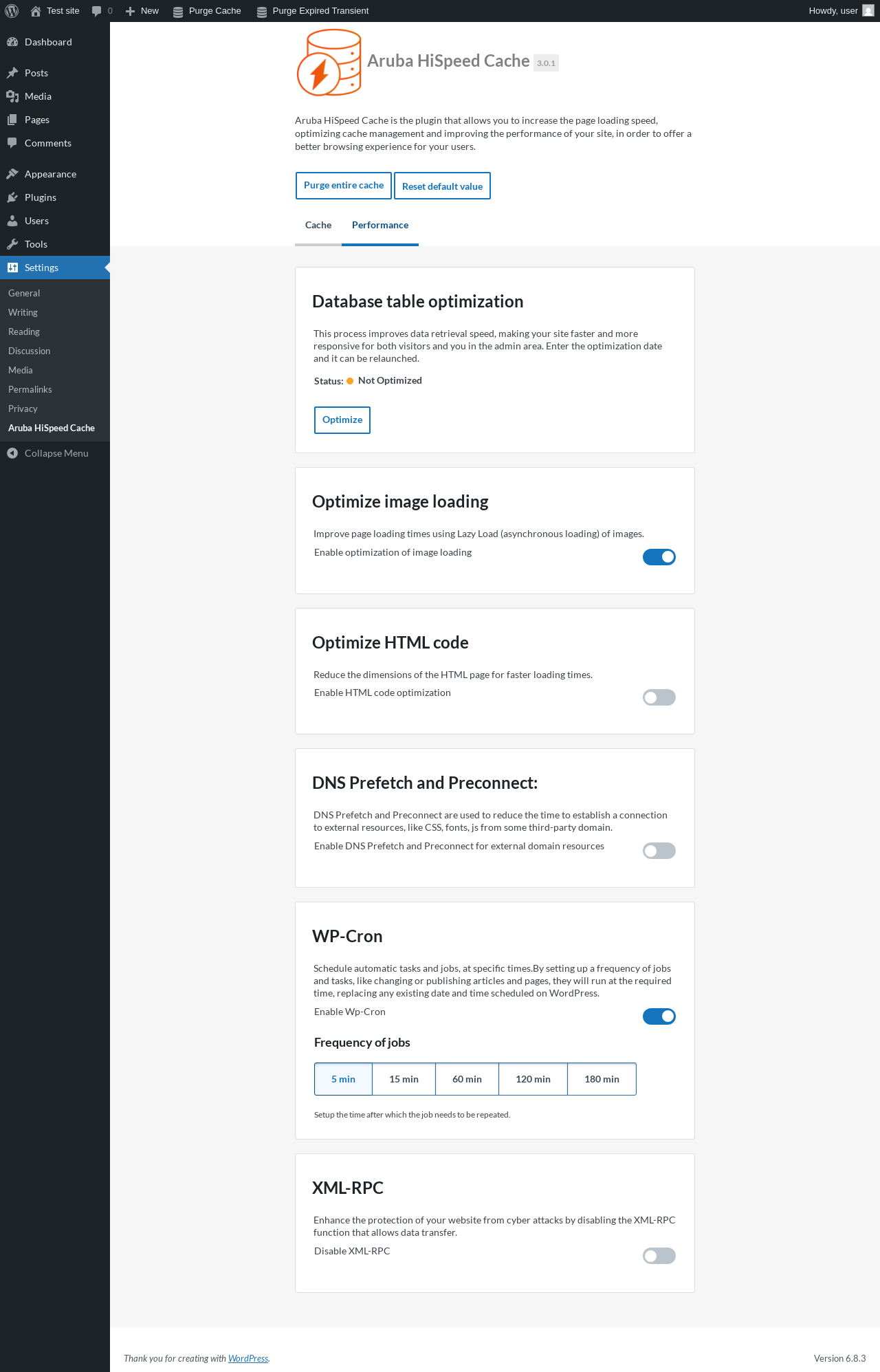 | URL | /wp-admin/options-general.php?page=aruba-hispeed-cache |
