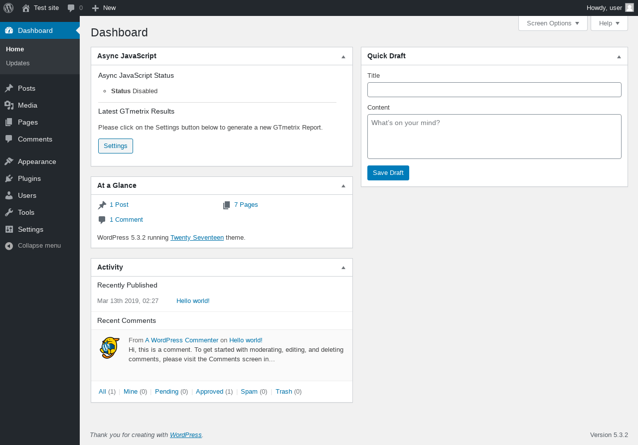 Does Async JavaScript work with WordPress 5.3.2 and PHP 7.2.16? A smoke test was performed on .