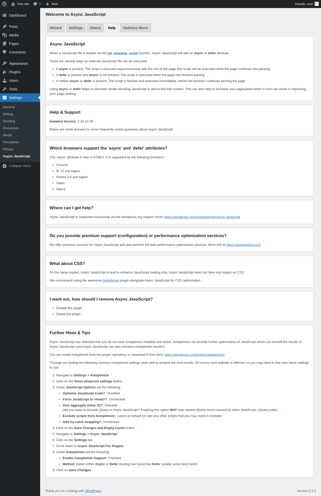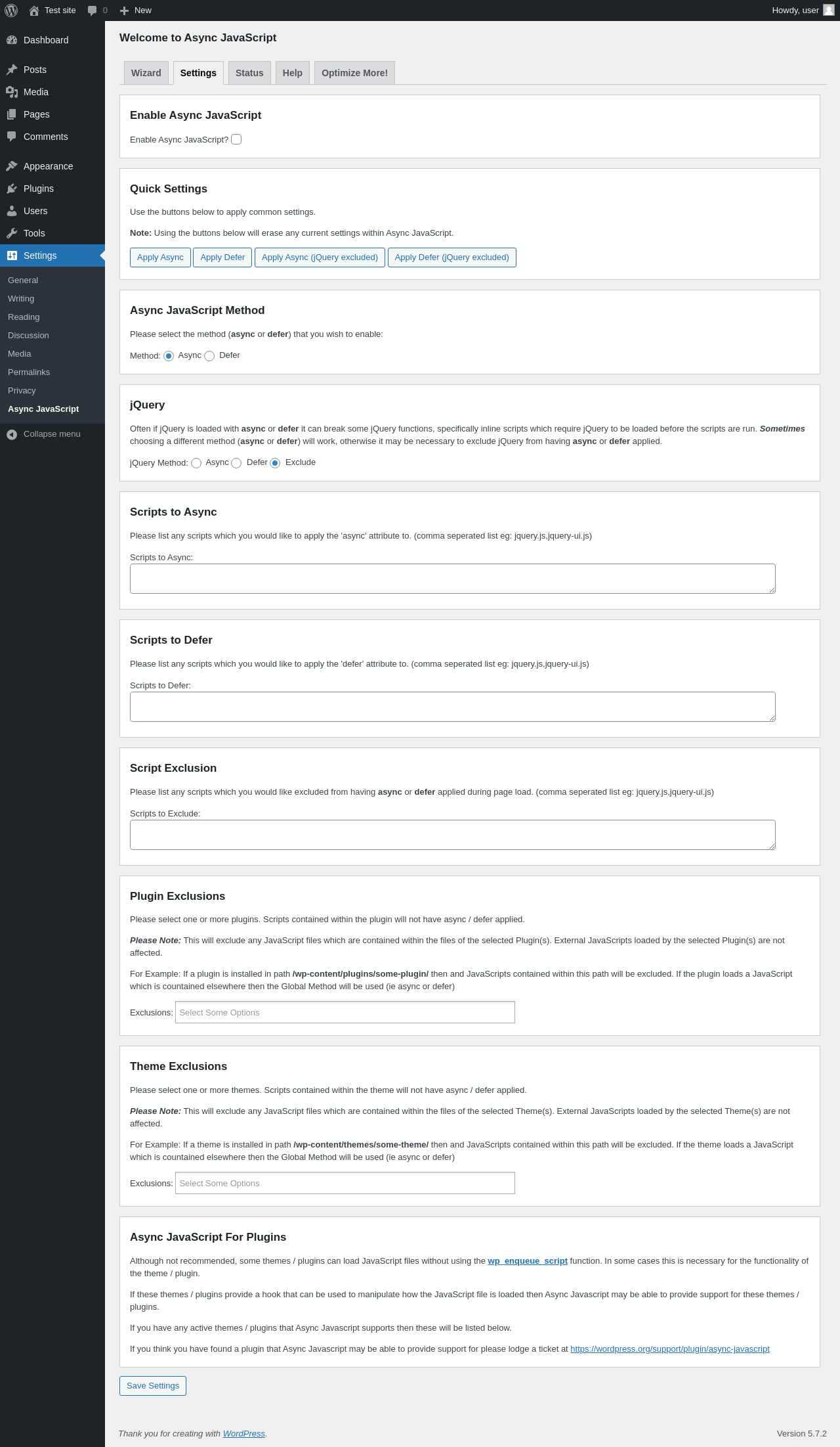 Does Async JavaScript work with WordPress 5.7.2 and PHP 7.4.8? A smoke test was performed on .