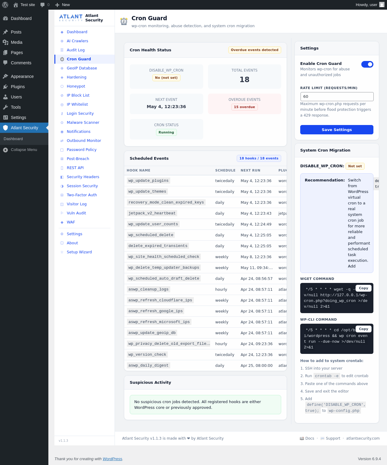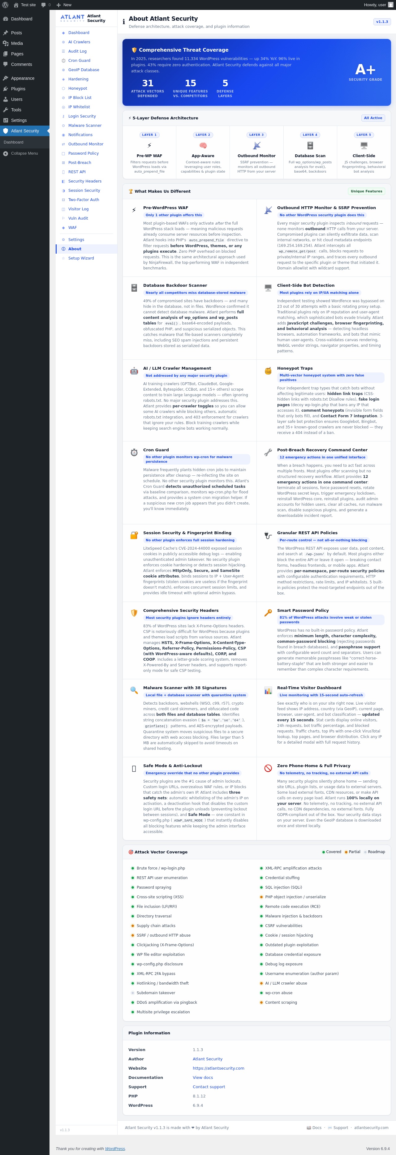 Does Atlant Security work with WordPress 6.9.4 and PHP 8.1.12? A smoke test was performed on .