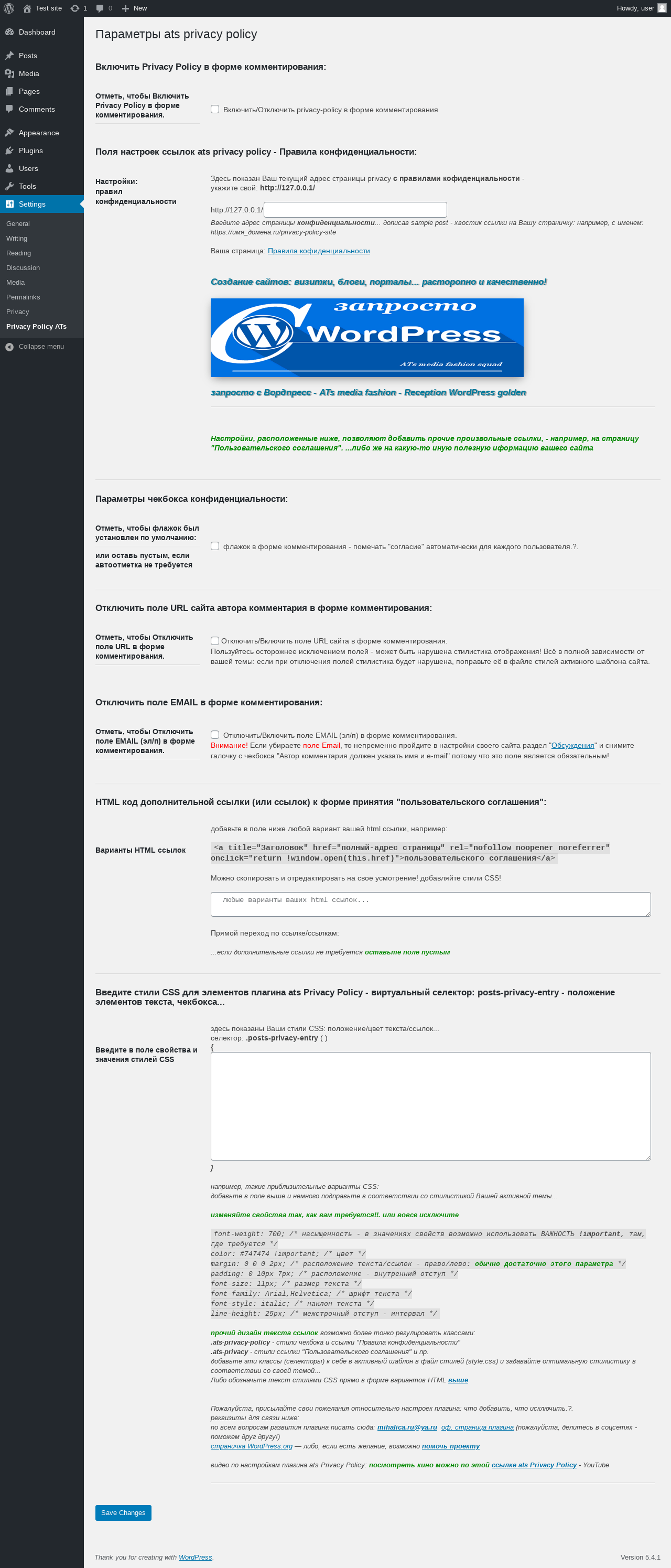 Does ats privacy policy work with WordPress 5.4.1 and PHP 7.2.16? A smoke test was performed on .