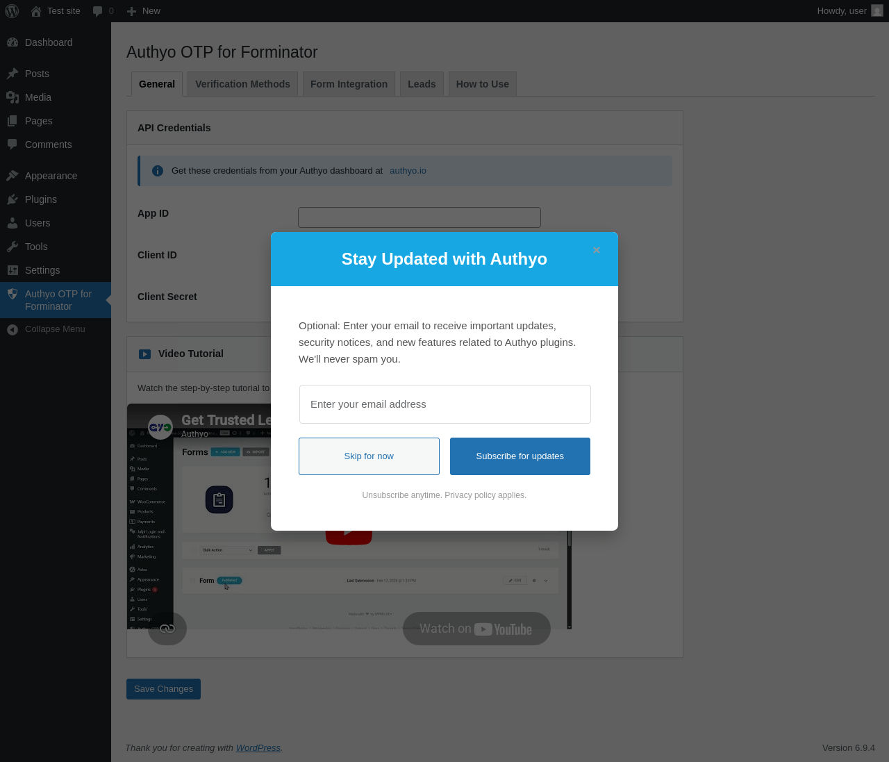 Does Authyo OTP for Forminator Form work with WordPress 6.9.4 and PHP 8.1.12? A smoke test was performed on .