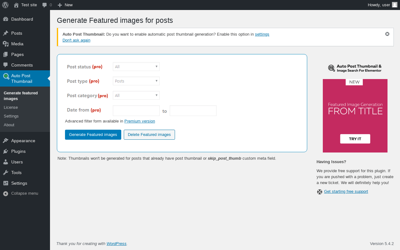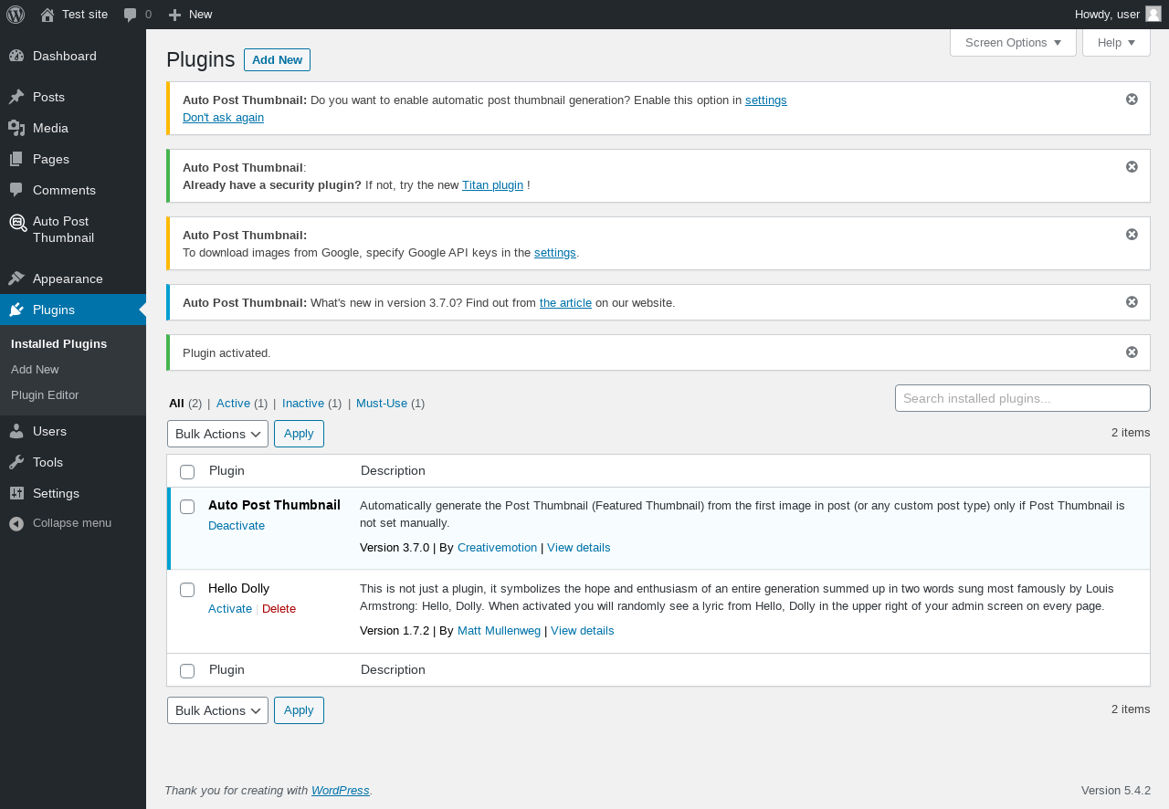 Does Auto Post Thumbnail work with WordPress 5.4.2 and PHP 7.2.16? A smoke test was performed on .