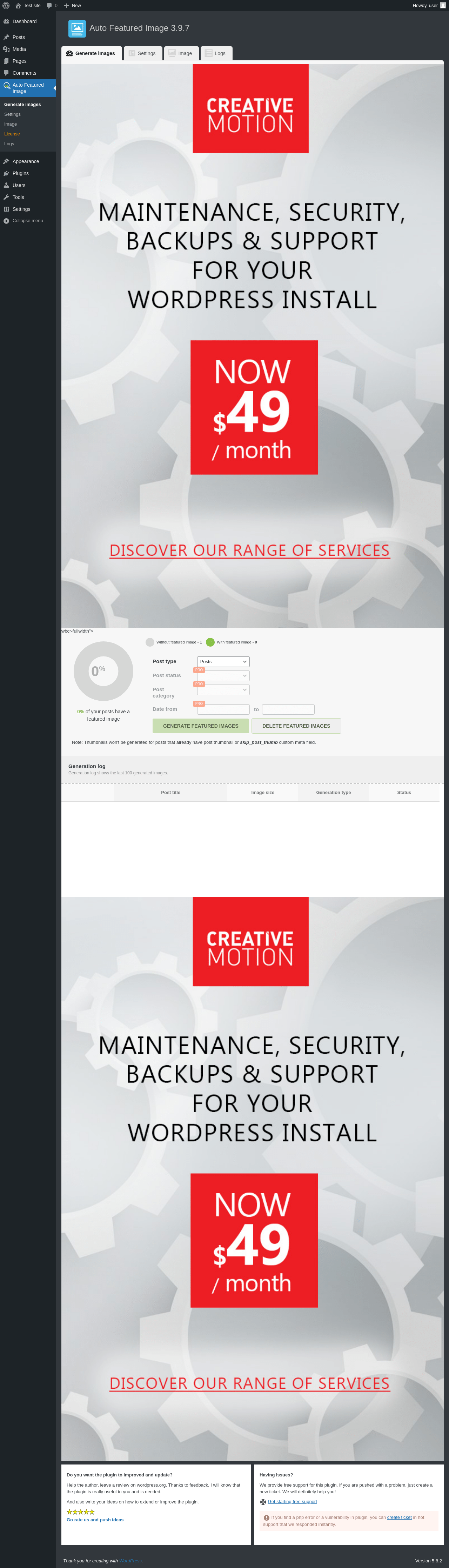 Does "Auto Featured Image (Auto Post Thumbnail)" work with WordPress 5.8.2 and PHP 7.4.8? A smoke test was performed on .