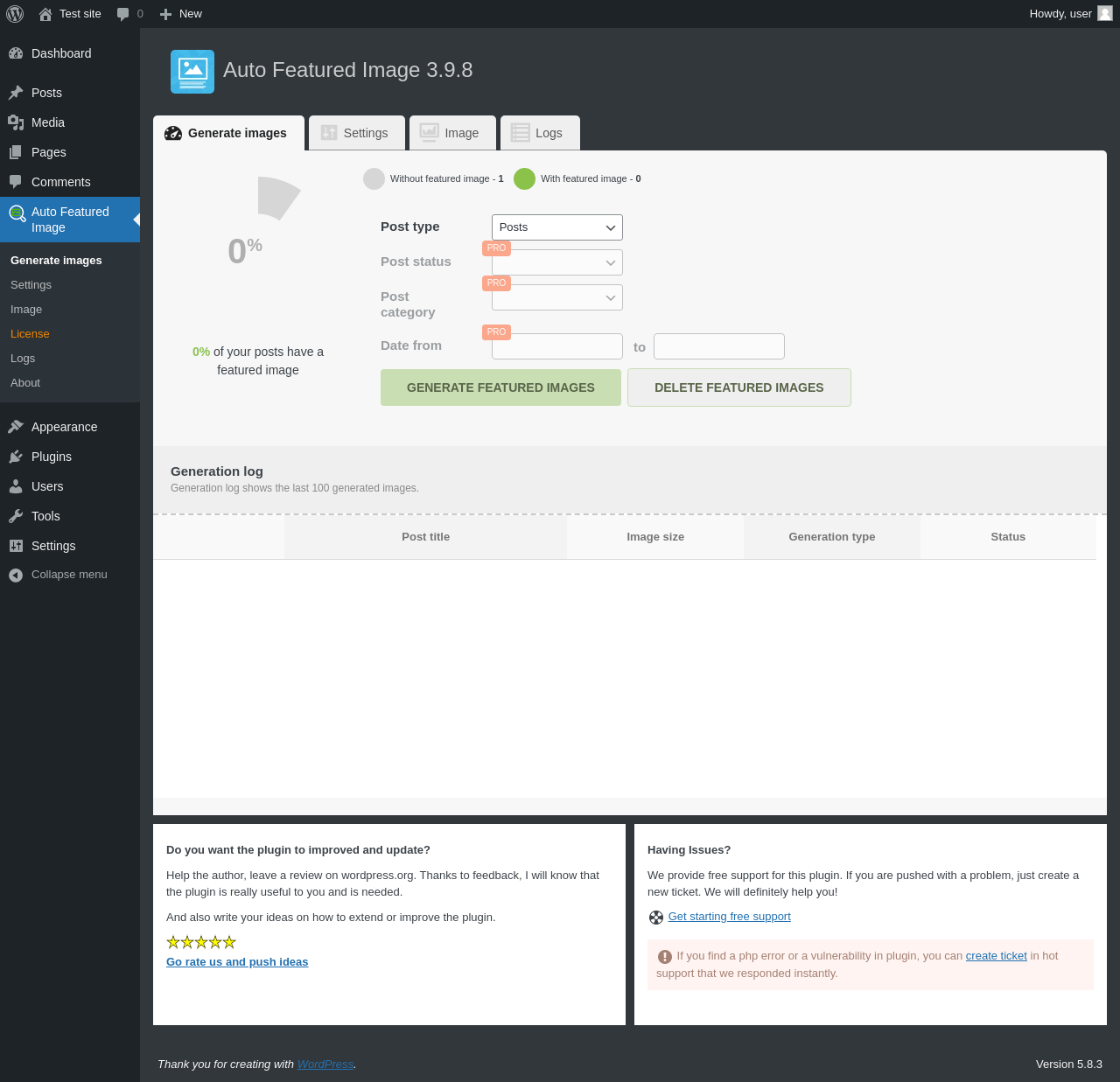 Does "Auto Featured Image (Auto Post Thumbnail)" work with WordPress 5.8.3 and PHP 7.4.8? A smoke test was performed on .