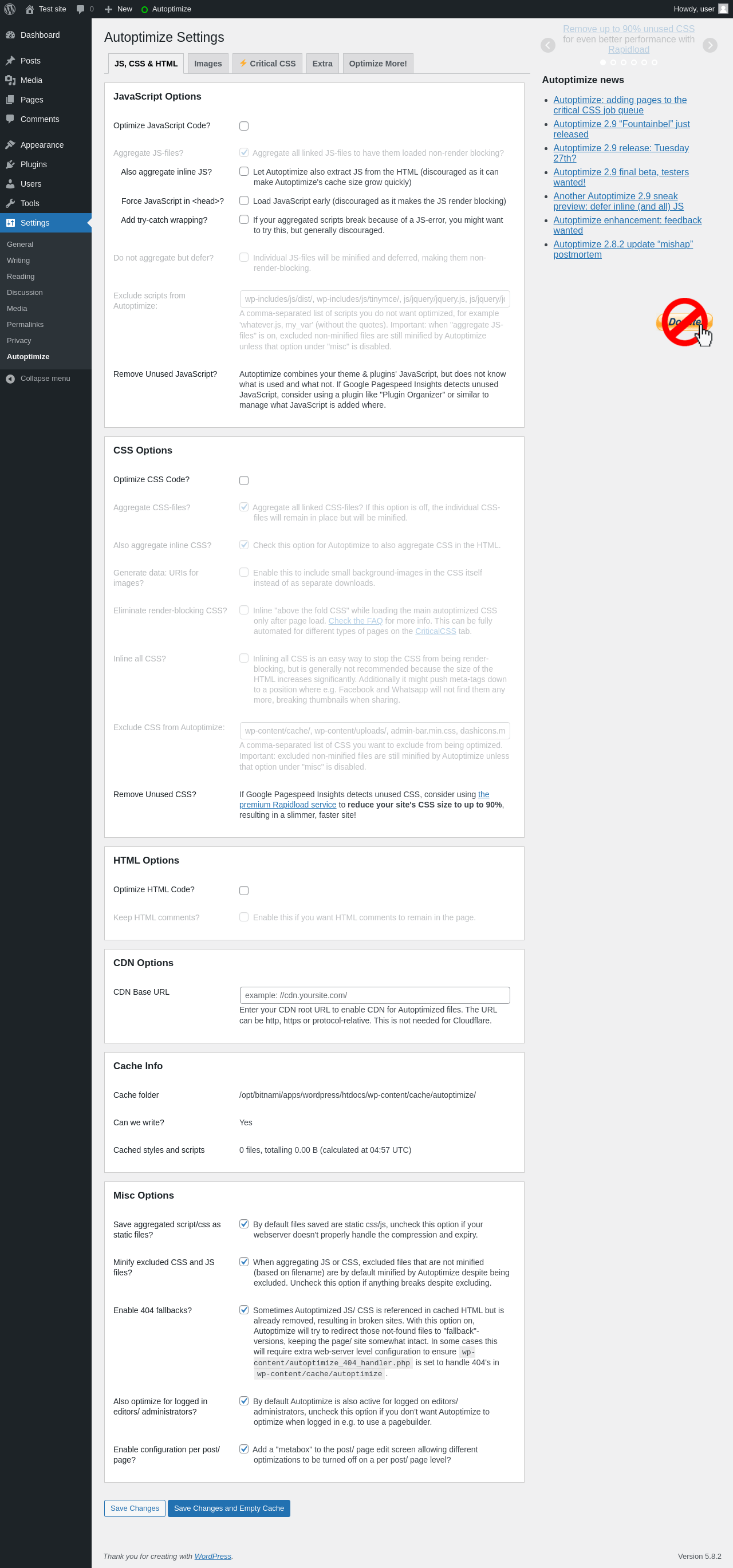 | URL | /wp-admin/options-general.php?page=autoptimize_extra |
