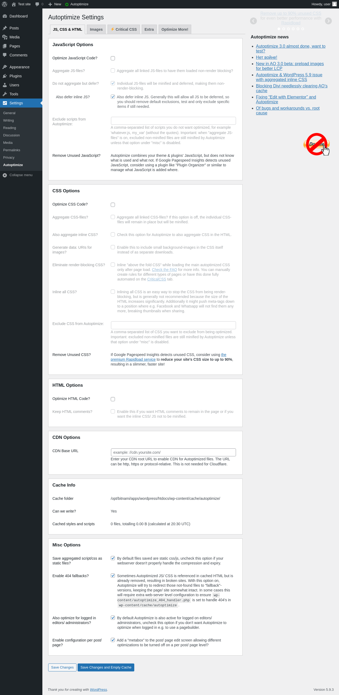 Does Autoptimize work with WordPress 5.9.3 and PHP 7.4.8? A smoke test was performed on .