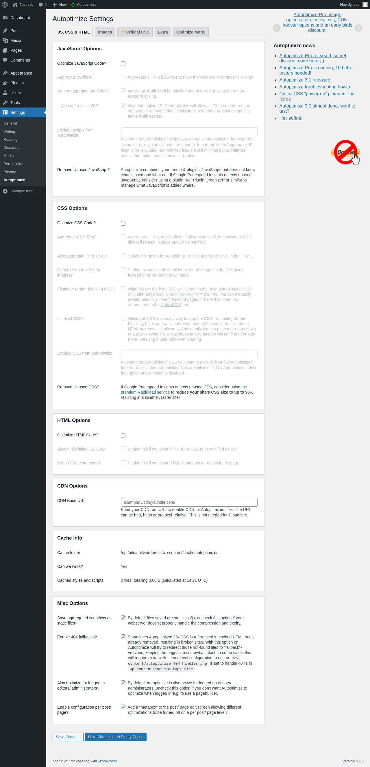 | URL | /wp-admin/options-general.php?page=autoptimize_extra |