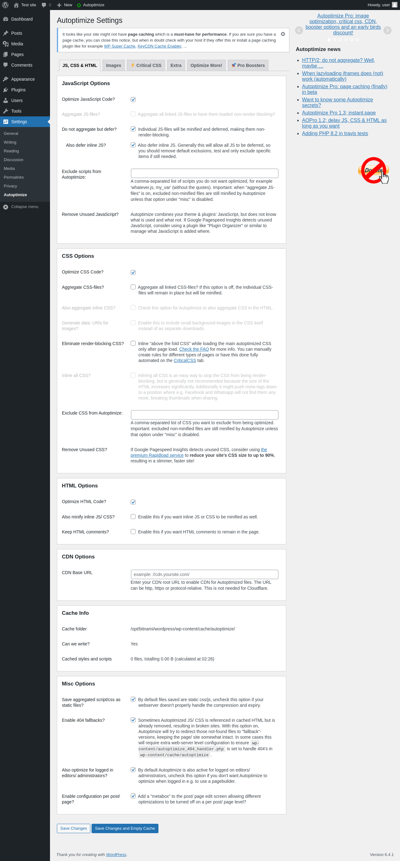 | URL | /wp-admin/options-general.php?page=autoptimize |