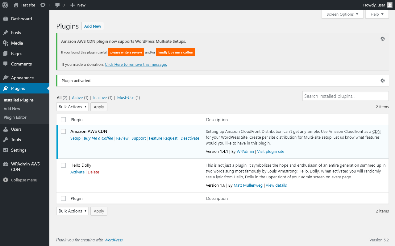Does Amazon AWS CDN work with WordPress 5.2 and PHP 7.0.16? A smoke test was performed on .