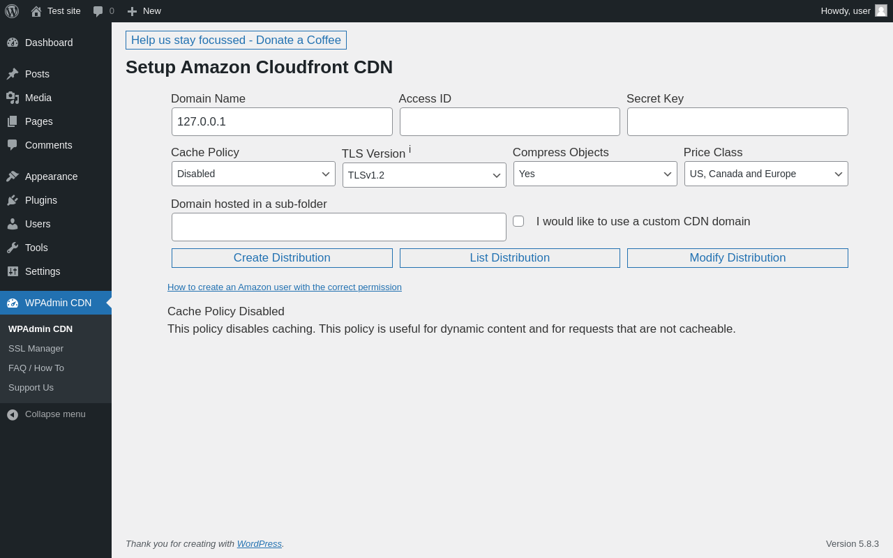 Does WPAdmin AWS CDN work with WordPress 5.8.3 and PHP 7.4.8? A smoke test was performed on .